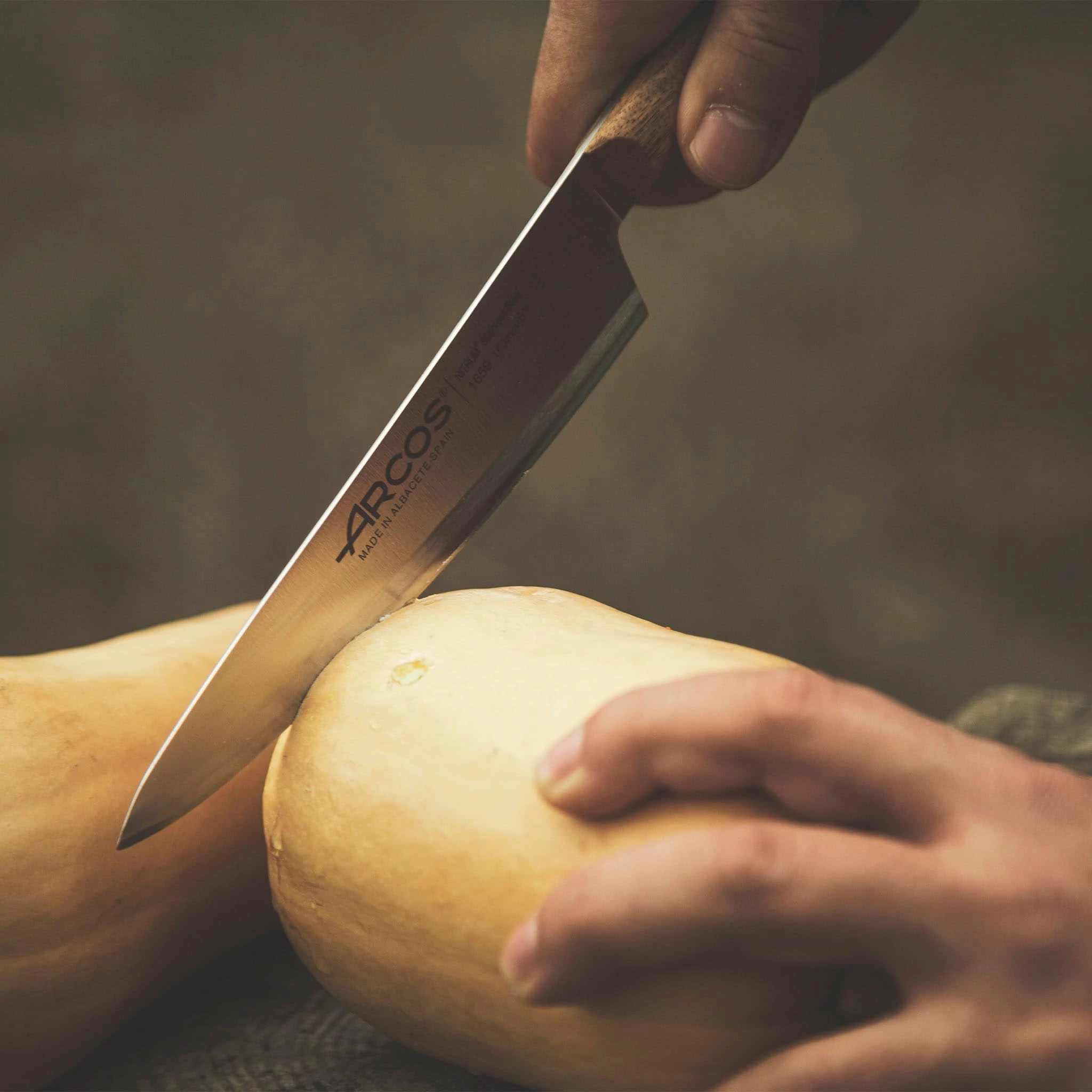 Arcos knives are made in Spain using the highest quality sustainable materials and carefully perfected manufacturing processes. They use a uniquely formulated Nitrum stainless steel for their blades to create knives with increased hardness, greater cutting power and a longer lasting edge.