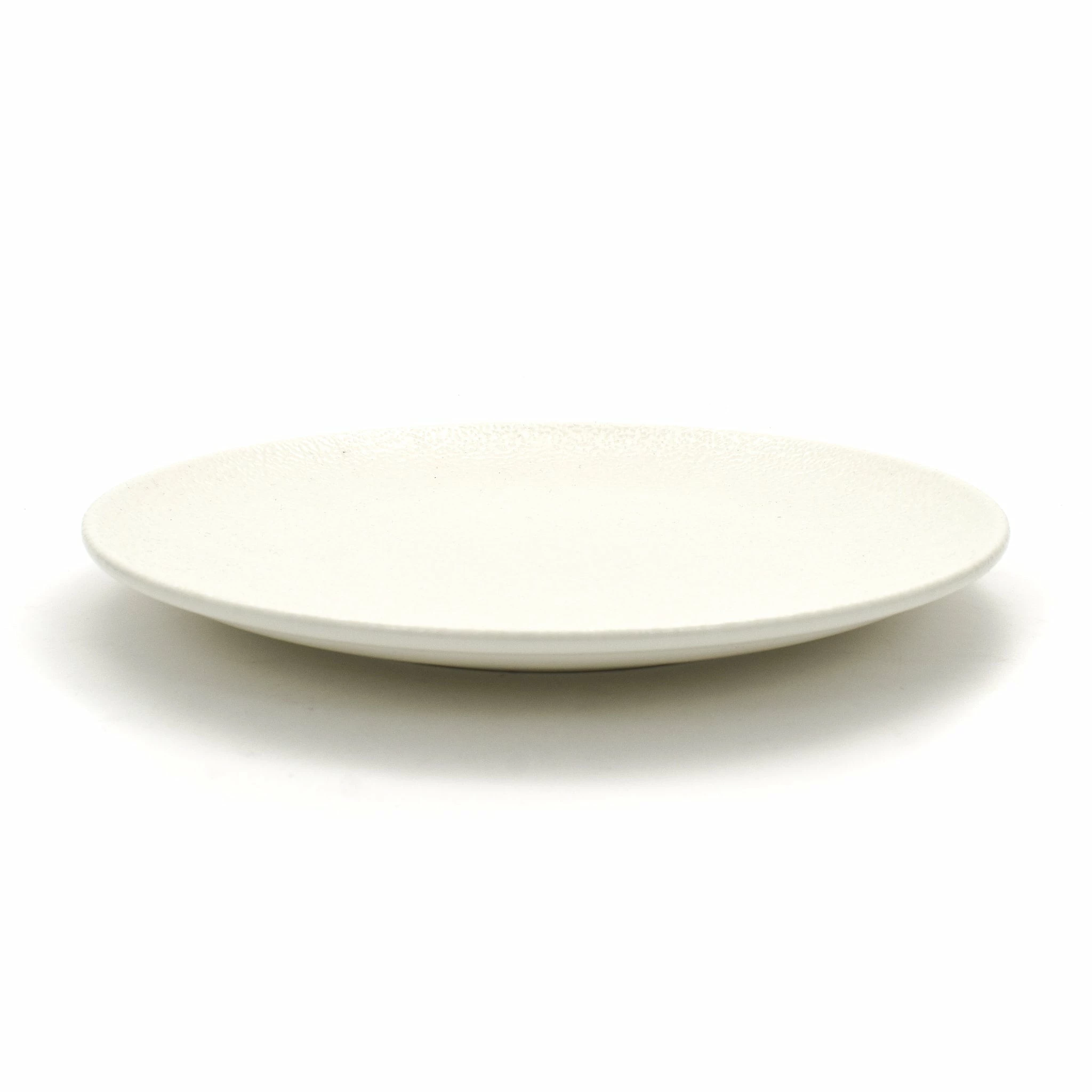 This textured white serving plate has a simple and classic finish that will highlight contrasting colours and textures. Use it to show off a vibrant centrepiece served family-style or load it with canapes and watch their colours pop.