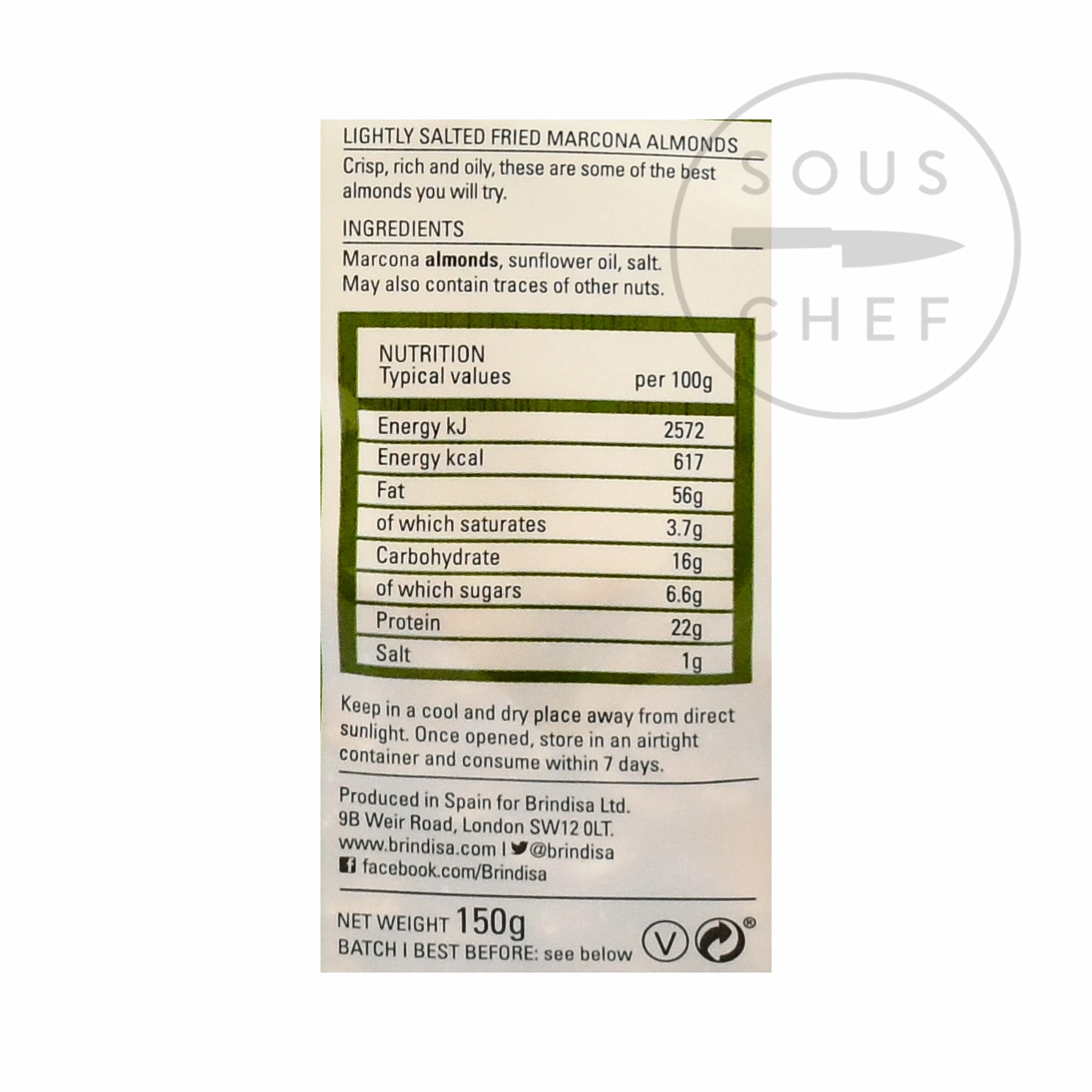 Ingredients: Marcona almonds (nuts), sunflower oil, salt
