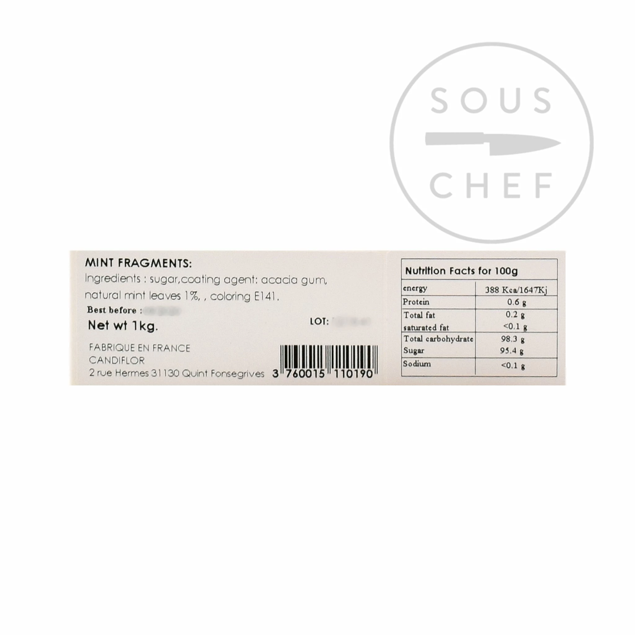 Use crystallised mint leaf pieces to decorate desserts and handmade chocolates, or even sprinkle over ice cream. The sugared pieces of real mint leaves have a sweet, spearmint flavour.