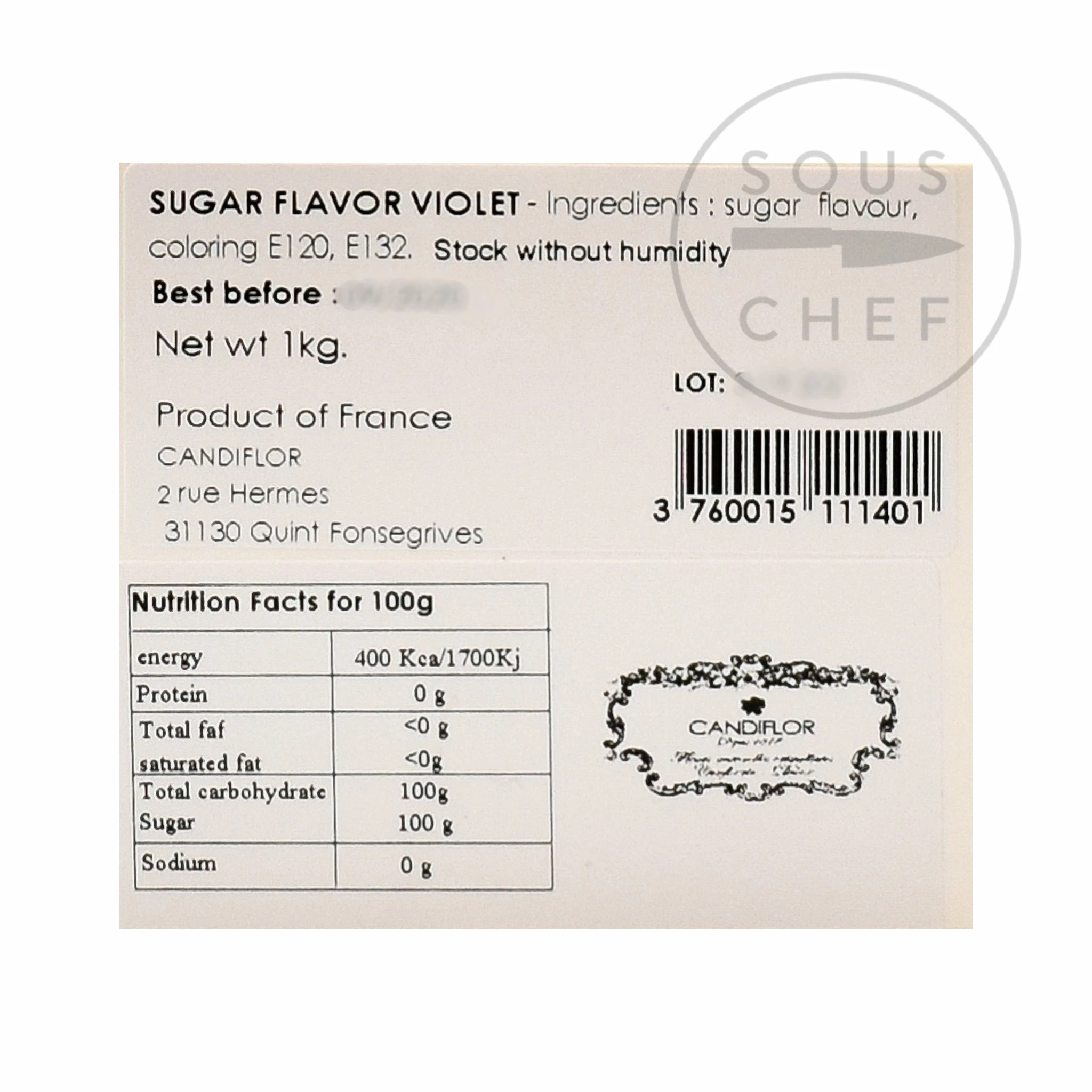 Use violet sugar to decorate iced biscuits, cupcakes, and even the rim of cocktail glasses. The vibrant purple sugar has a hint of floral violet aroma.