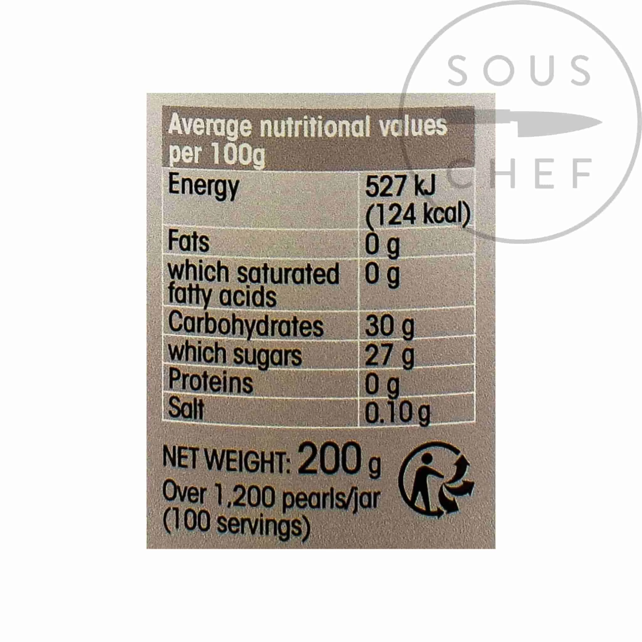 Use these pale, translucent pearls to add a sophisticated finish to beef carpaccio or sashimi salmon, or to complement the savoury flavours of a mushroom risotto. They also made an ideal alternative to caviar for finishing canapes.Â
