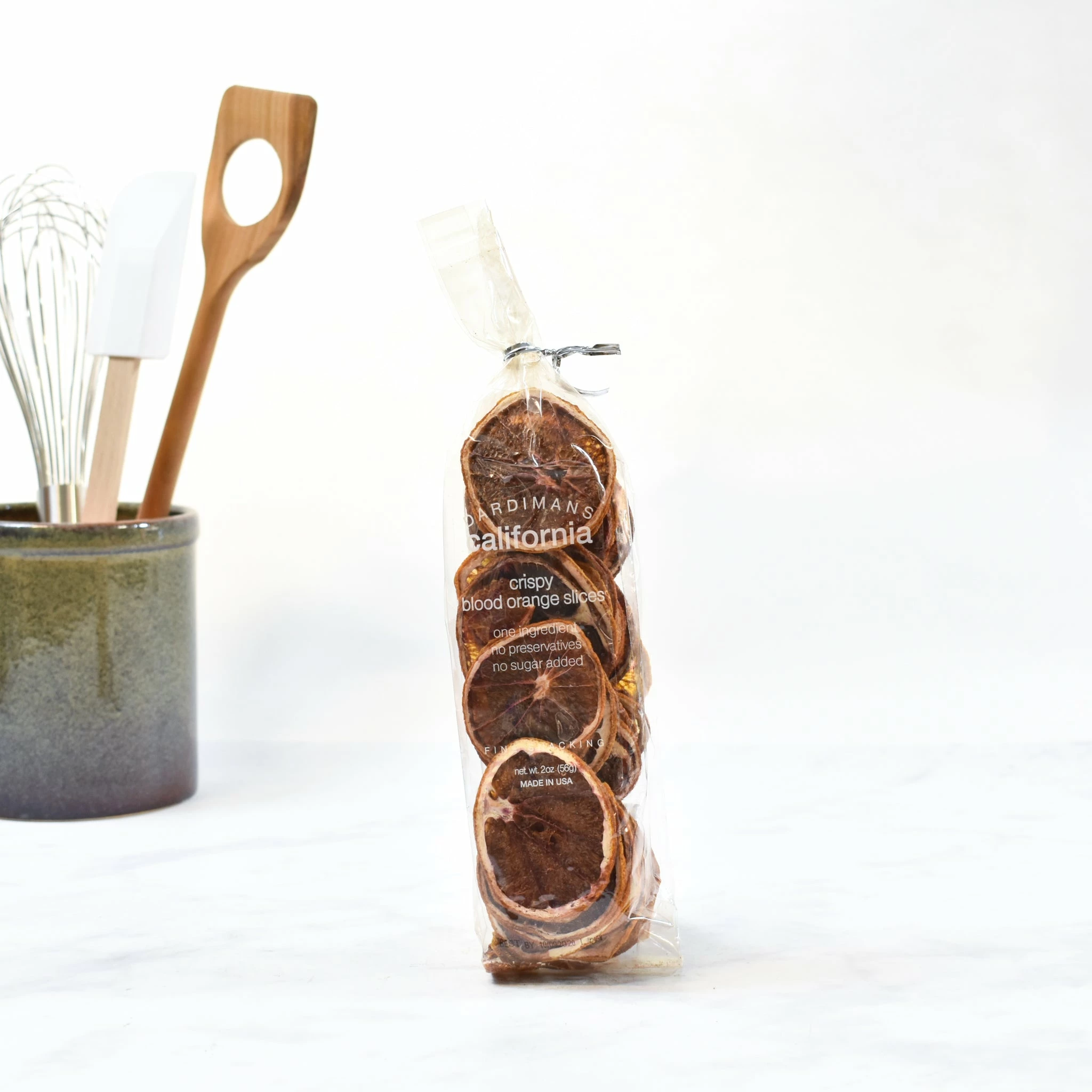Use blood orange crisps in a gin & tonic for a sweet citrus garnish and a hint of pink colour. The dehydrated slices of blood orange also make eye-catching cake decorations. Try pressing lightly into the sides of a cheesecake.