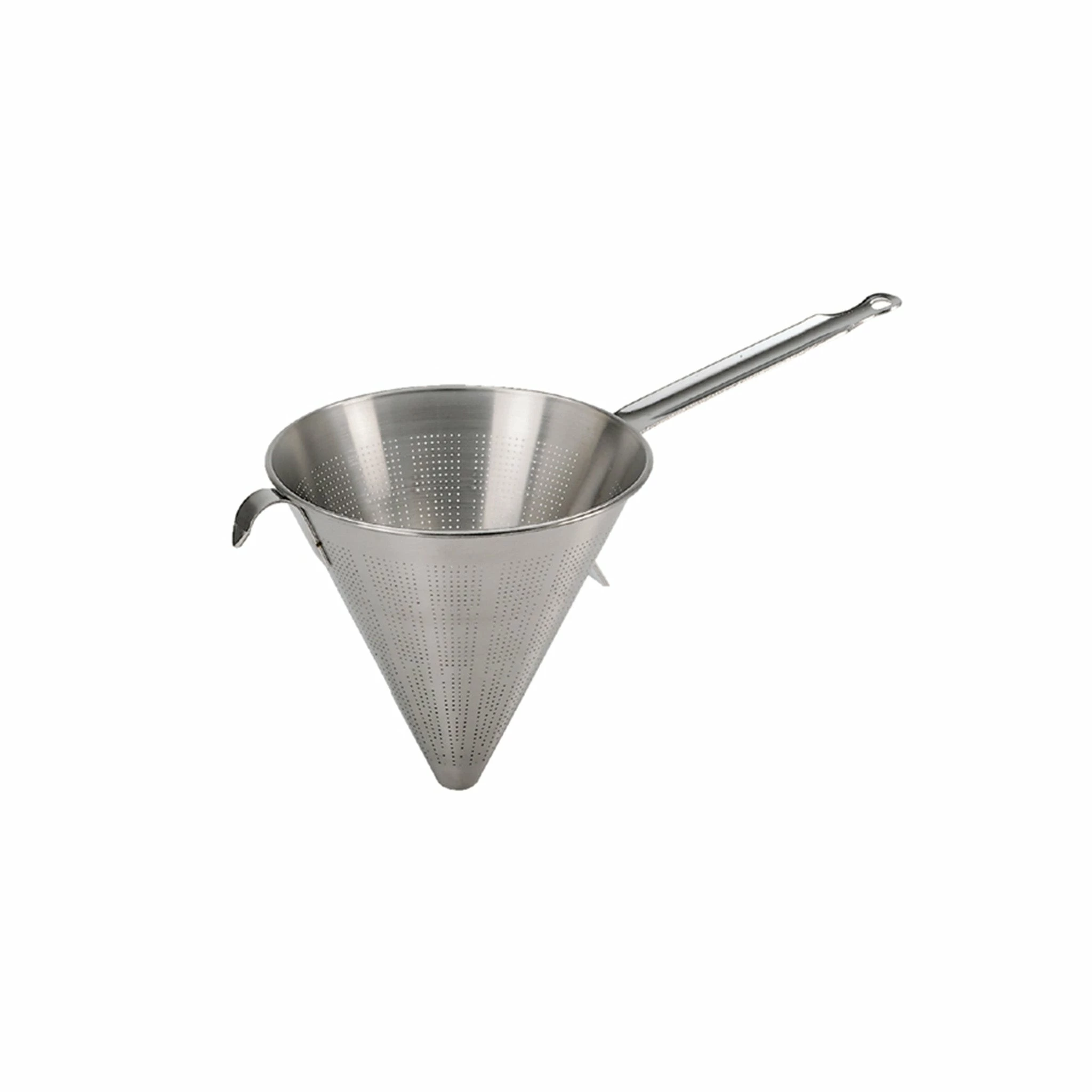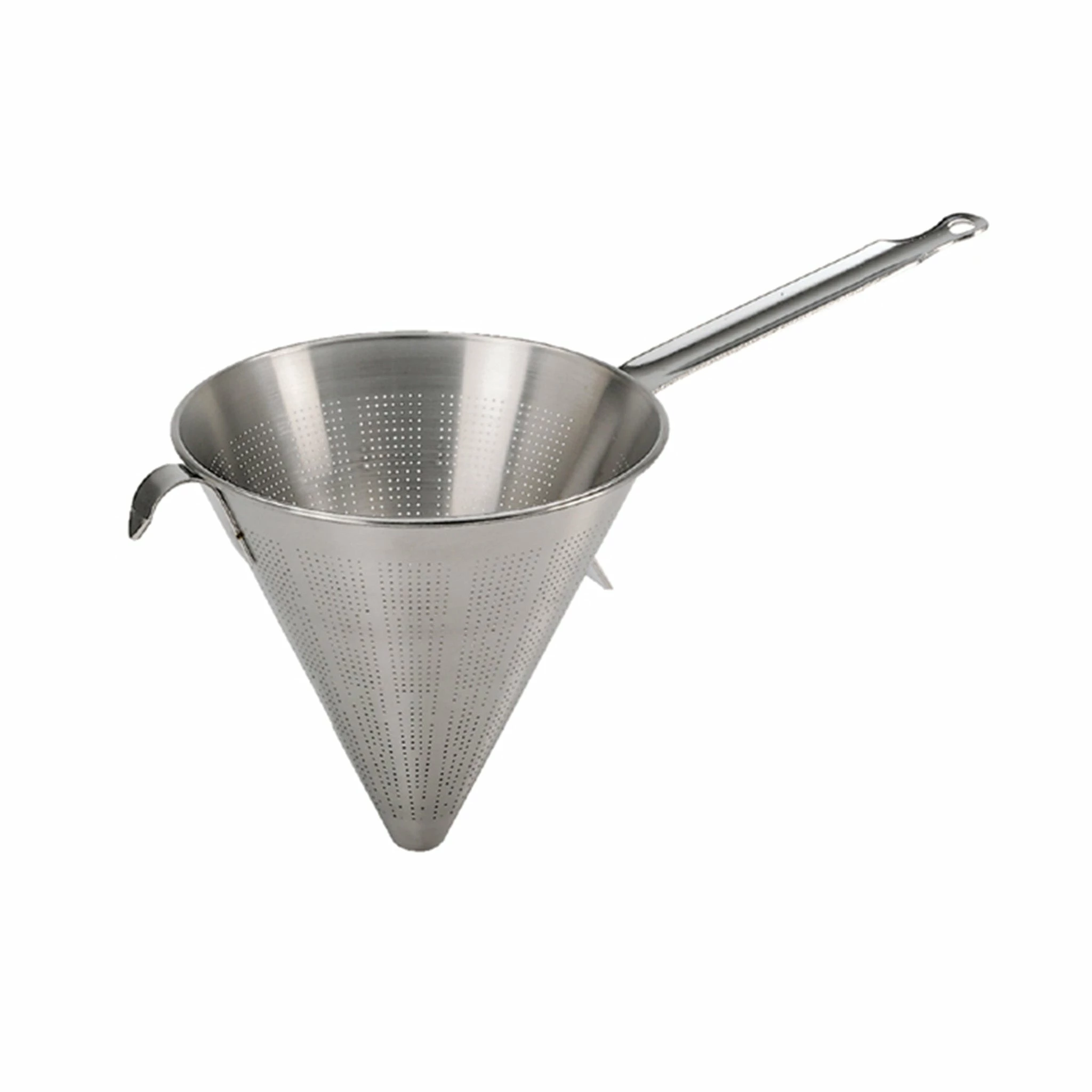 The standard 1.5mm perforations are suitable for straining most preparations. You can line the chinois with muslin for pip-free jams and jellies, or for clarifying consommés.