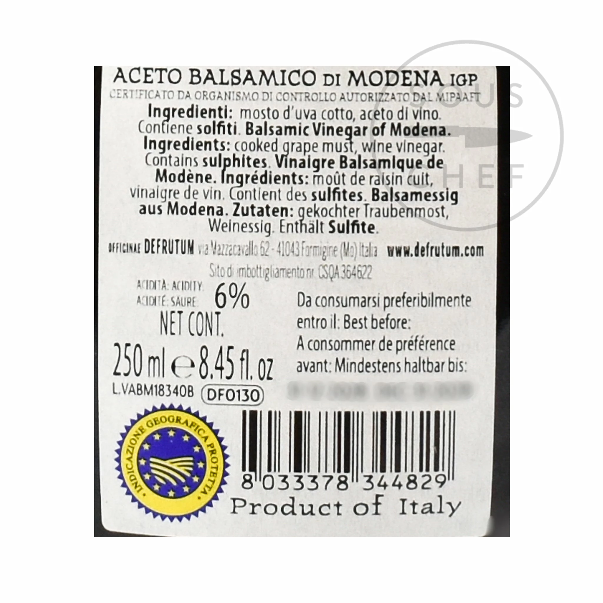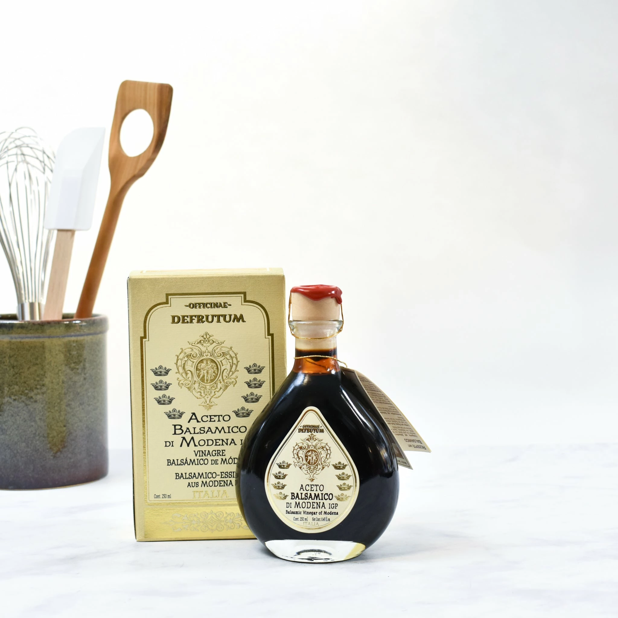 Defrutum 16-year aged balsamic vinegar has been awarded IGP, or Indicazione Geografica Protetta, status. This shows that it is one of the protected classifications of balsamic vinegar, Balsamic Vinegar of Modena. The production process is rigorously monitored – and unlike ‘balsamic condiment’ or cheaper ‘balsamic vinegars’ – which usually have no ageing, true Balsamic Vinegar of Modena must be aged for a minimum of 60 days in wood.