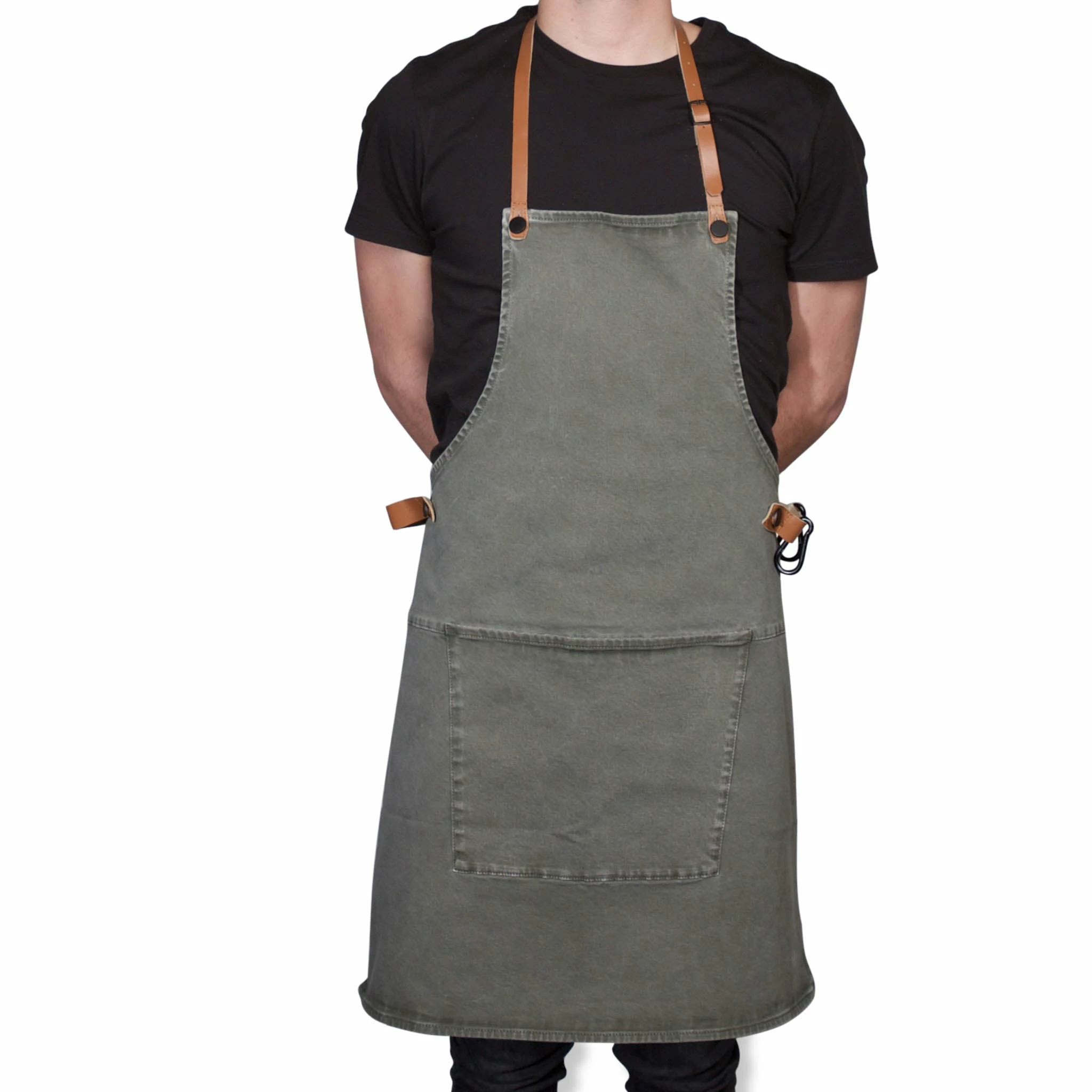 Dutchdeluxes Canvas BBQ Apron In Grey-Green