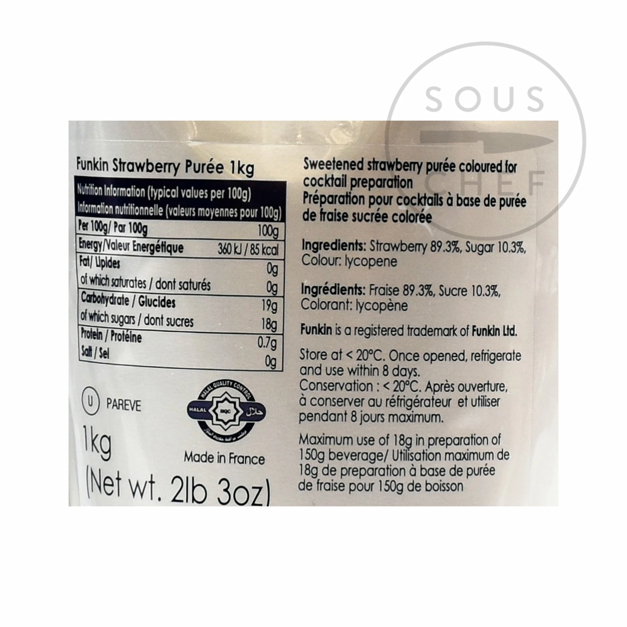 Funkin purees contain only the best fruit from around the world – no artificial colours, flavours, preservatives or additives. This strawberry puree is made from a blend of Honeoye, Elsanta and Symphony strawberries from the finest growers in Poland and Spain. The purees come in a pourable pouch with a re-sealable screw top lid for easy cocktail making.