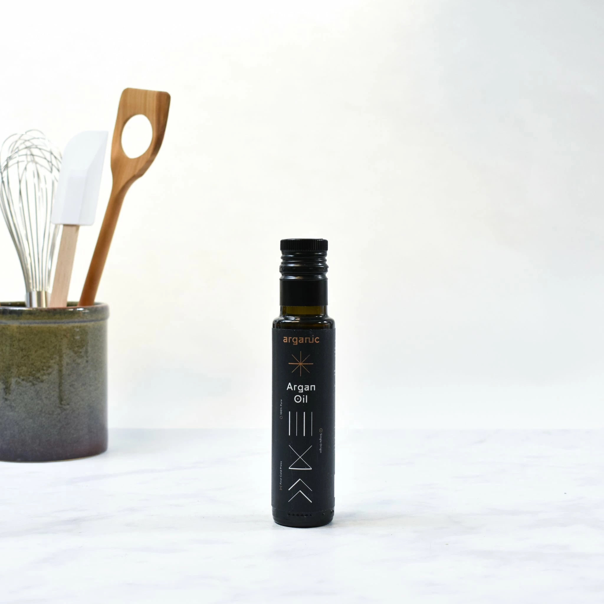 Each bottle can be traced back to the exact tree which the stones are harvested from. This means Arganic’s oil is 100% pure argan oil, and is never diluted with other lesser or cheaper oils. Unlike many other argan oils, the stones are also just lightly toasted after harvesting, and are then pressed immediately to ensure that the oil tastes as good as possible, and retains its natural health benefits.