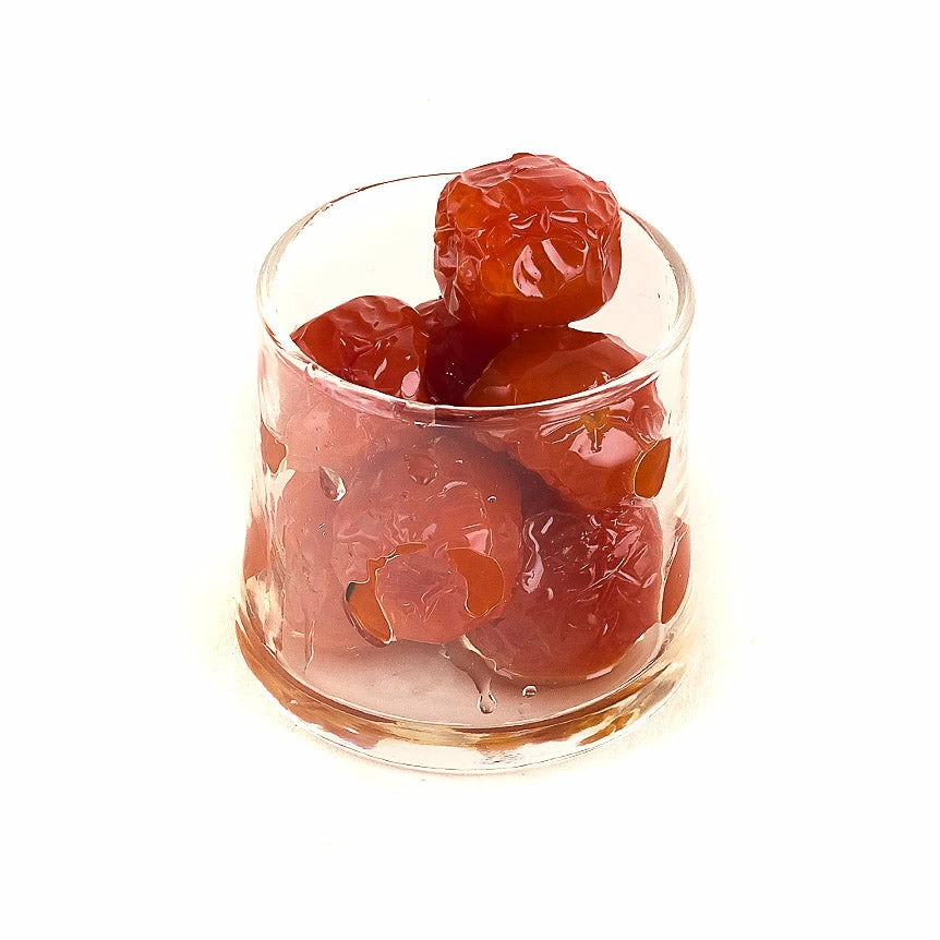 With a soft texture, sweet and syrupy sugar coating, these tomatoes are fantastic served on the side of a Bloody Mary cocktail, or eat alongside olives for a cocktail snack.