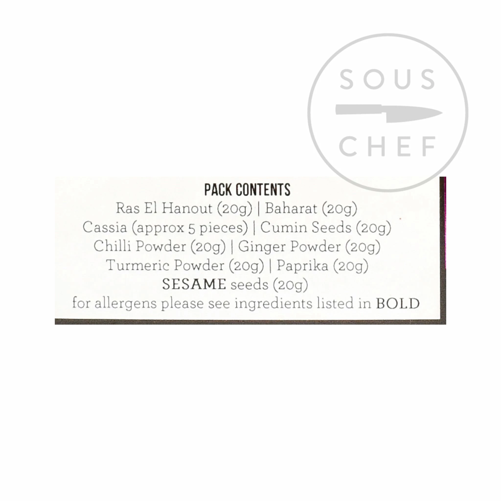 - Ras el Hanout 20g– warm, aromatic blend of cumin, coriander, cinnamon, ginger, black pepper, turmeric and cardamom