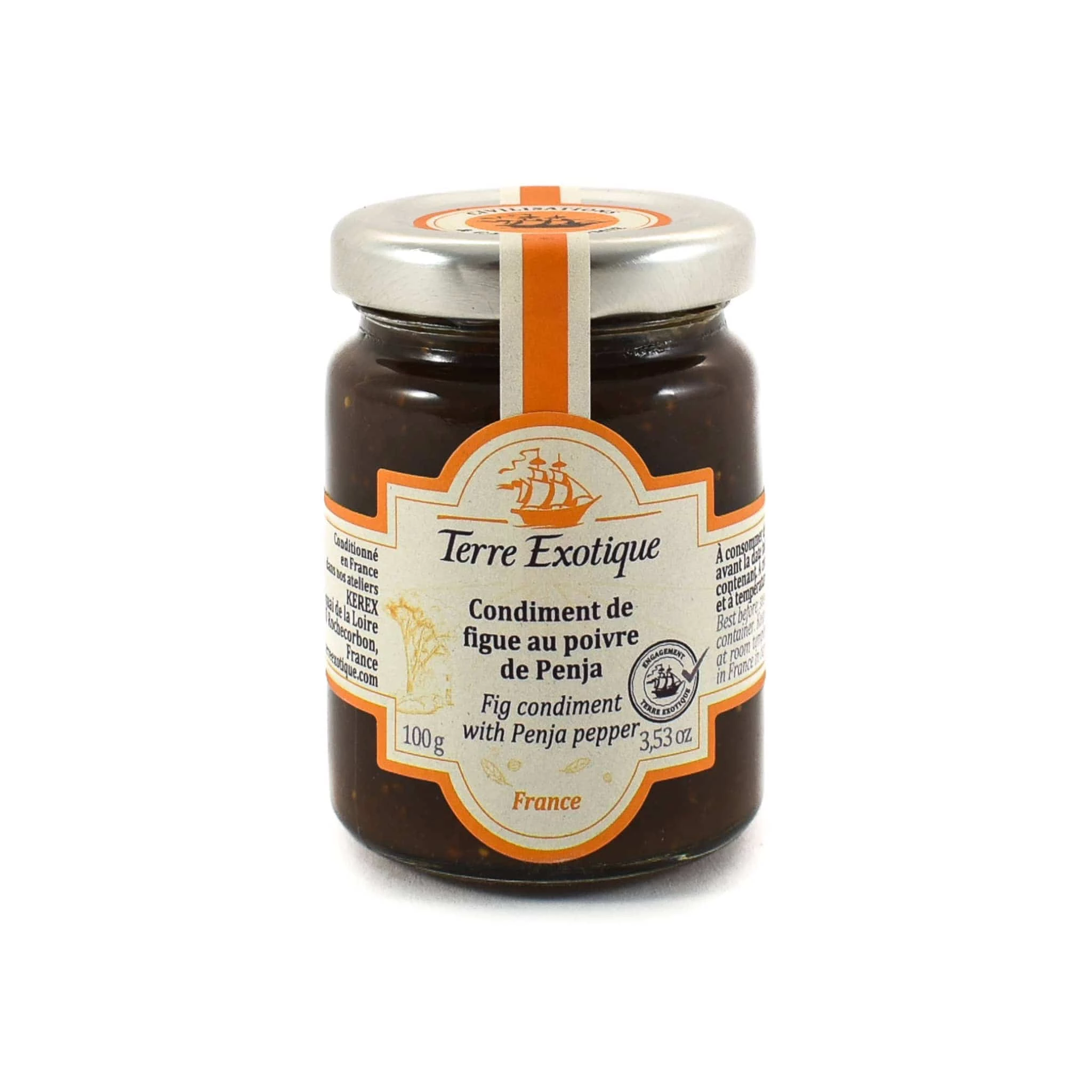 Ingredients: Fig (60%), Brown sugar, balsamic vinegar, spices (including Penja pepper 0.25 %).