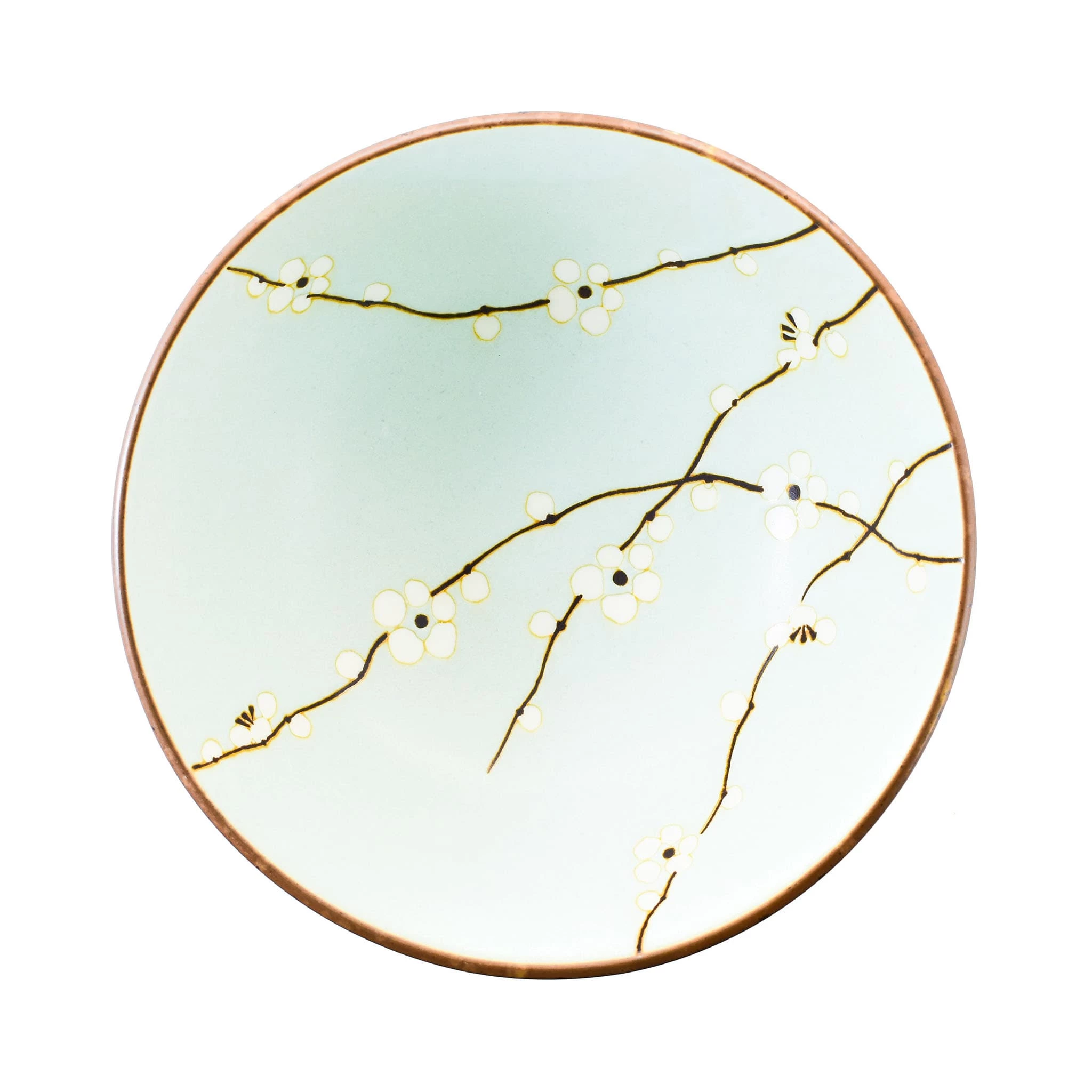 Attractive duck-egg blue stoneware bowl decorated with a traditional Japanese sakura blossom pattern. The sakura blossom ramen bowl is ideal for serving large, warming helpings of miso broth or a hearty portion of ramen. Also available is a Sakura Blossom Square Plate for a themed table setting.