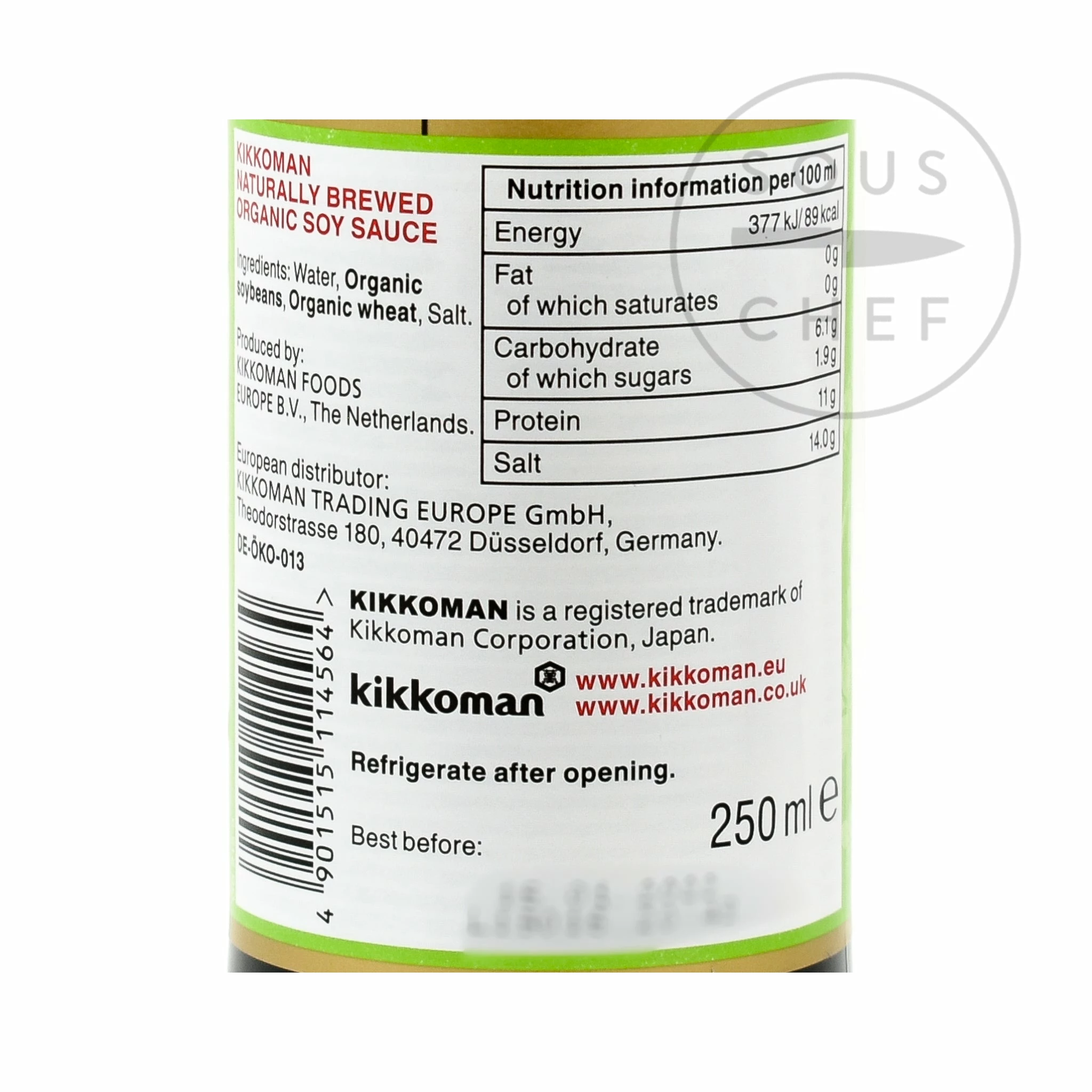 Kikkoman organic soy sauce is the organic version of Kikkoman’s famous naturally brewed Japanese soy sauce. It’s mild and velvety in texture, with the complex yet well-balanced flavour you’d expect from Kikkoman.