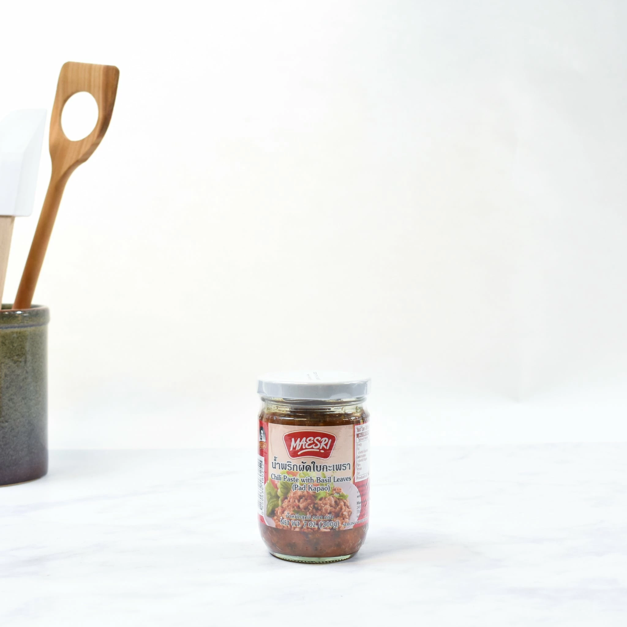 Thai chilli paste with holy basil is a fragrant, spicy paste used in Thai cuisine. Holy basil is a herb native to South East Asia and is used in the stir fry dish pa kapao or pad kra pao.