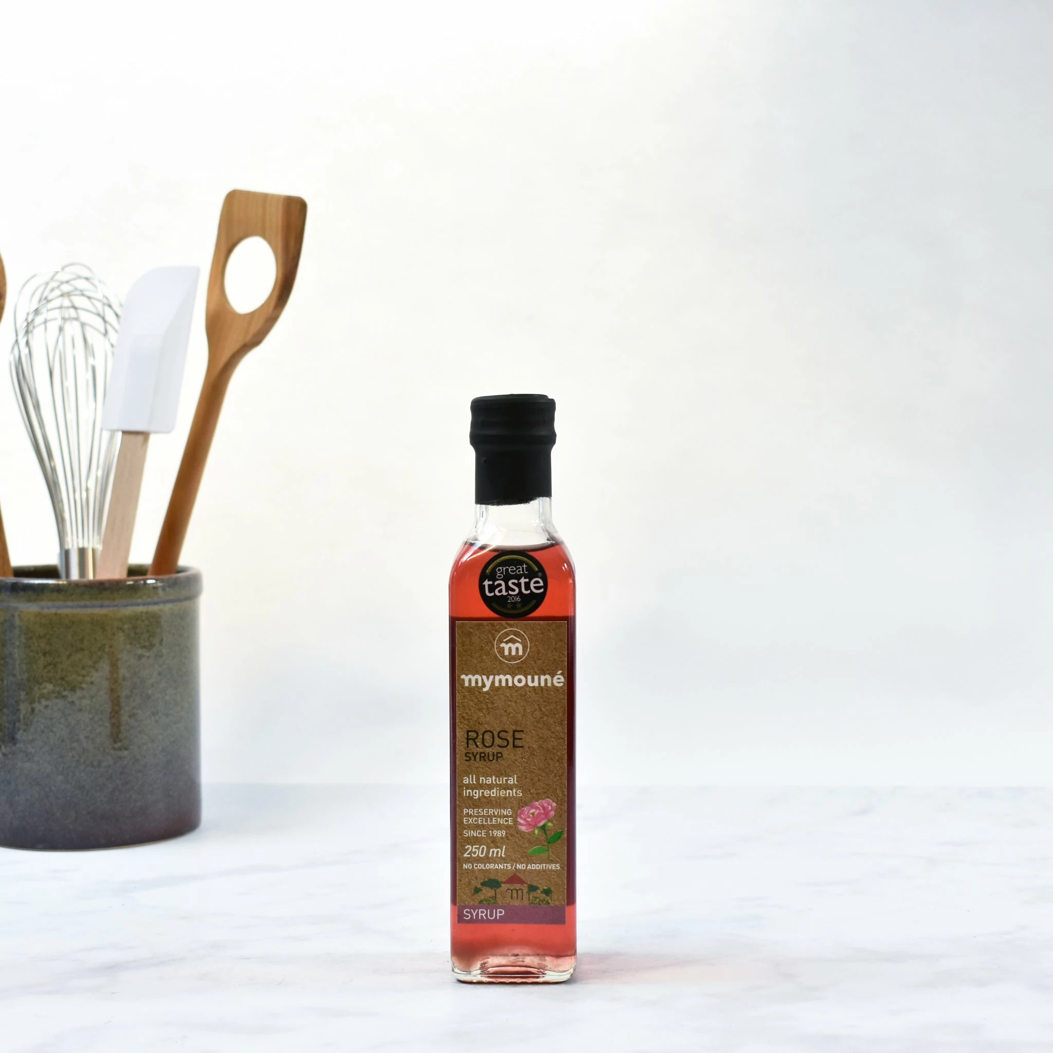 Mymouné’s Rose Syrup is much more than just a flavouring for desserts. Diluted in water with lots of ice and a squeeze of lemon or lime it makes a refreshing summer drink. For those special occasions, serve in a glass of champagne to add a delicate aroma. Or why not try it straight from the bottle – next time you have a fruit salad drizzle a little over the fruit for a taste of the Middle East.
