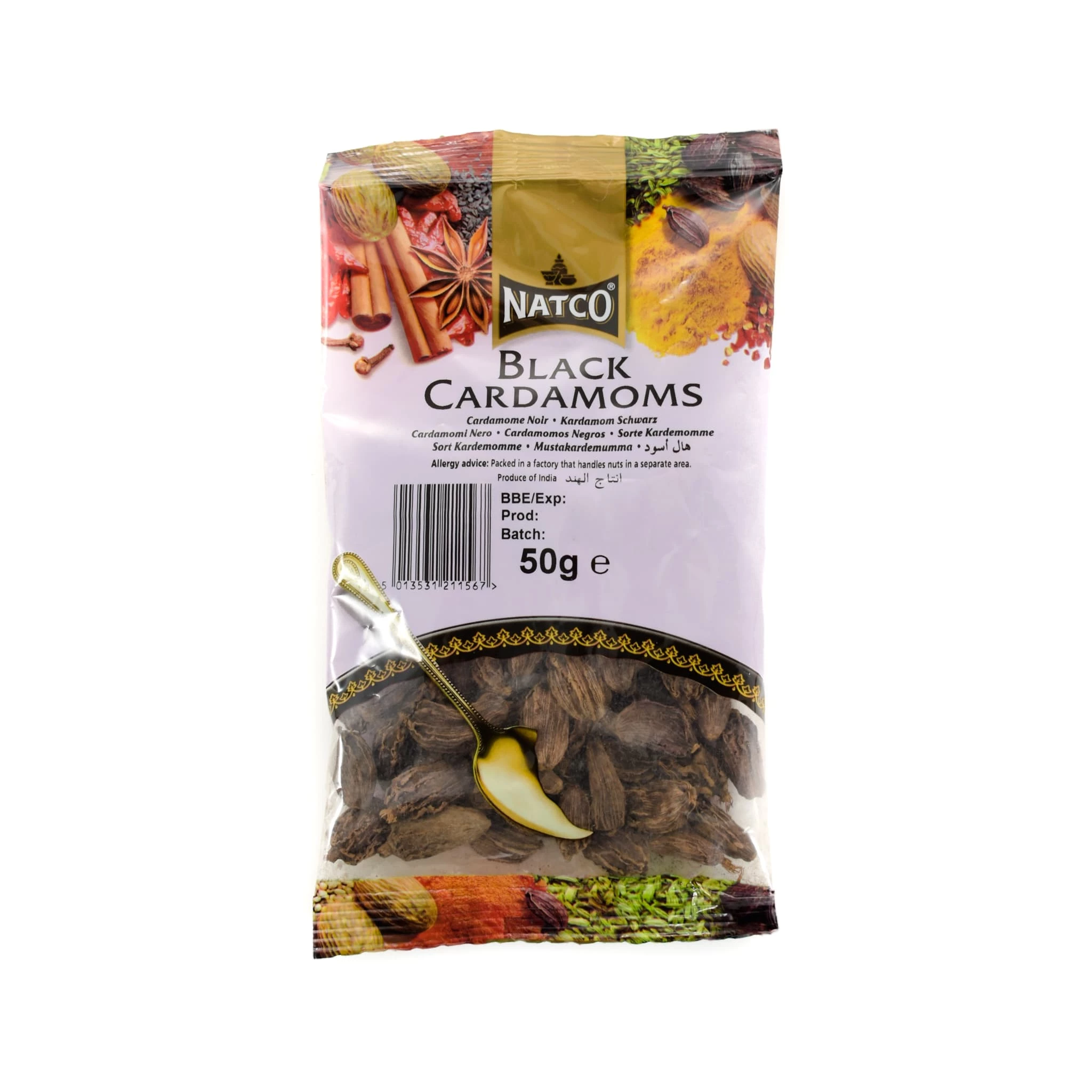 Black cardamom consists of the seeds of the Greater Indian or Nepal Cardamom, Amomum subulatum – matt dark-brown in colour, ridged and wrinkled in appearance. It has a noticeably smoky fragrance and flavour, with sharp notes of pine resin.