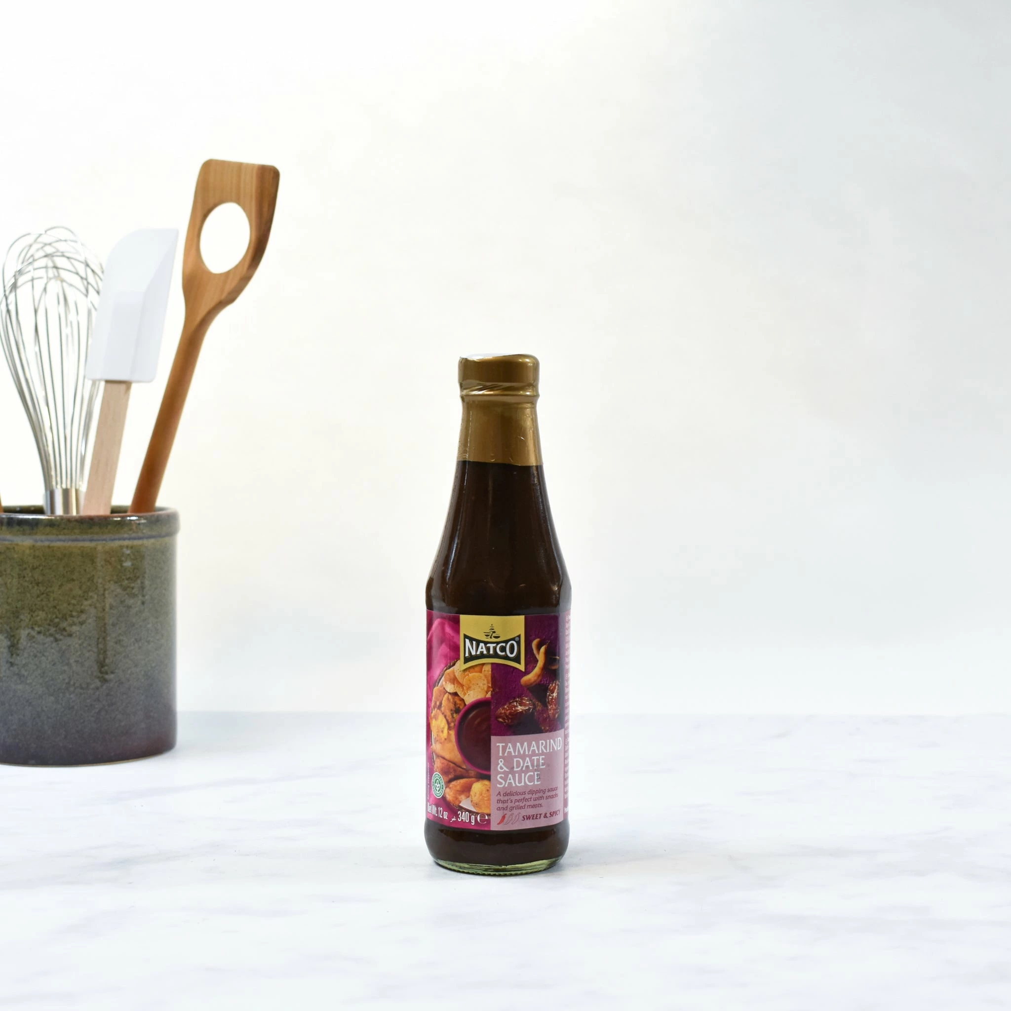 Ingredients: Water, tamarind (18%), date (9%), molases, salt, sugar, chilli, ginger, maize starch, mixed spice blend (contains colour: caramel), acidity regulator: citric acid, vinegar, preservative: soodium benzoate.