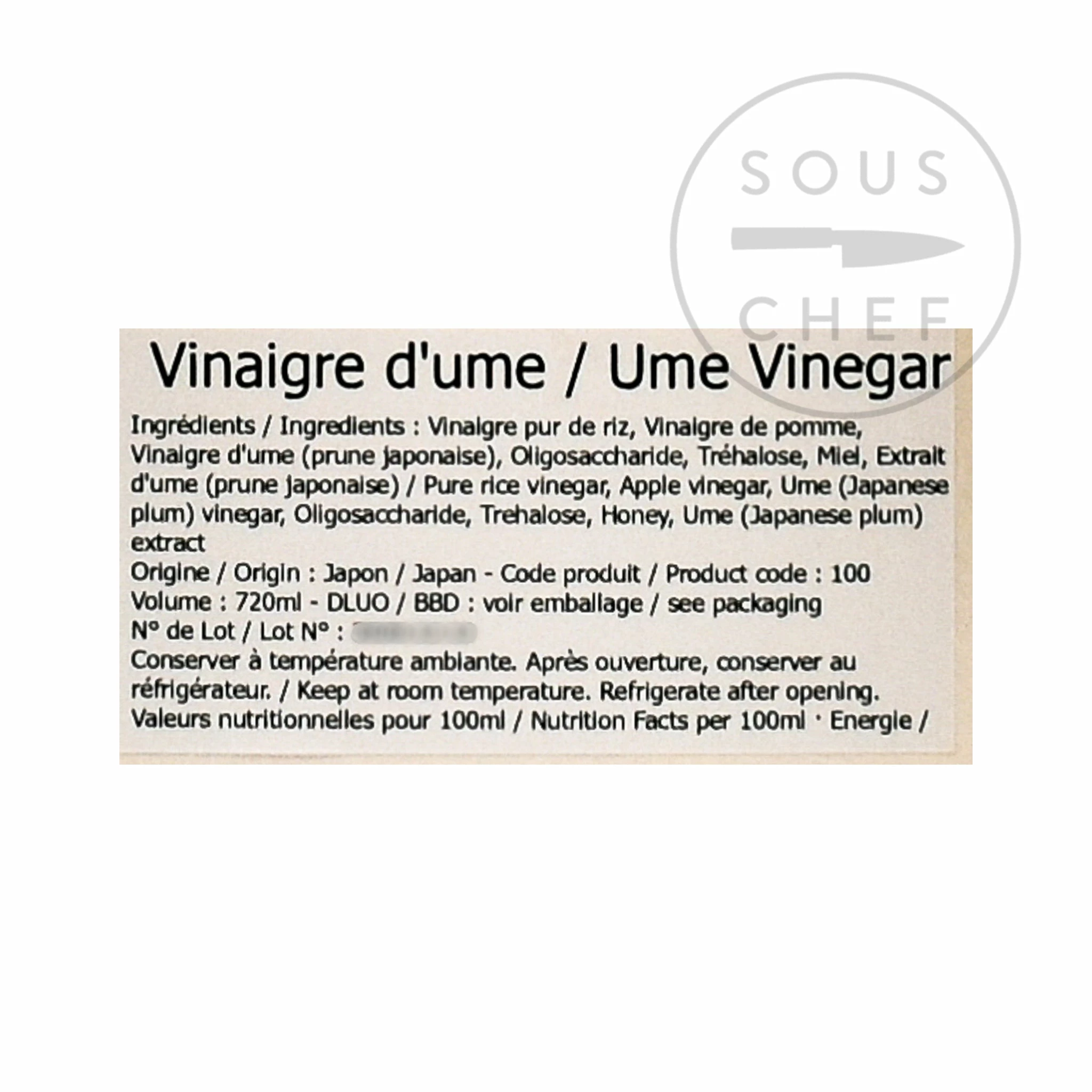 Ingredients: pure rice vinegar, apple vinegar, ume vinegar (Japanese plum vinegar), oligosaccharide (prebiotic), trehalose (sweetener), honey, ume extract (Japanese plum extract).