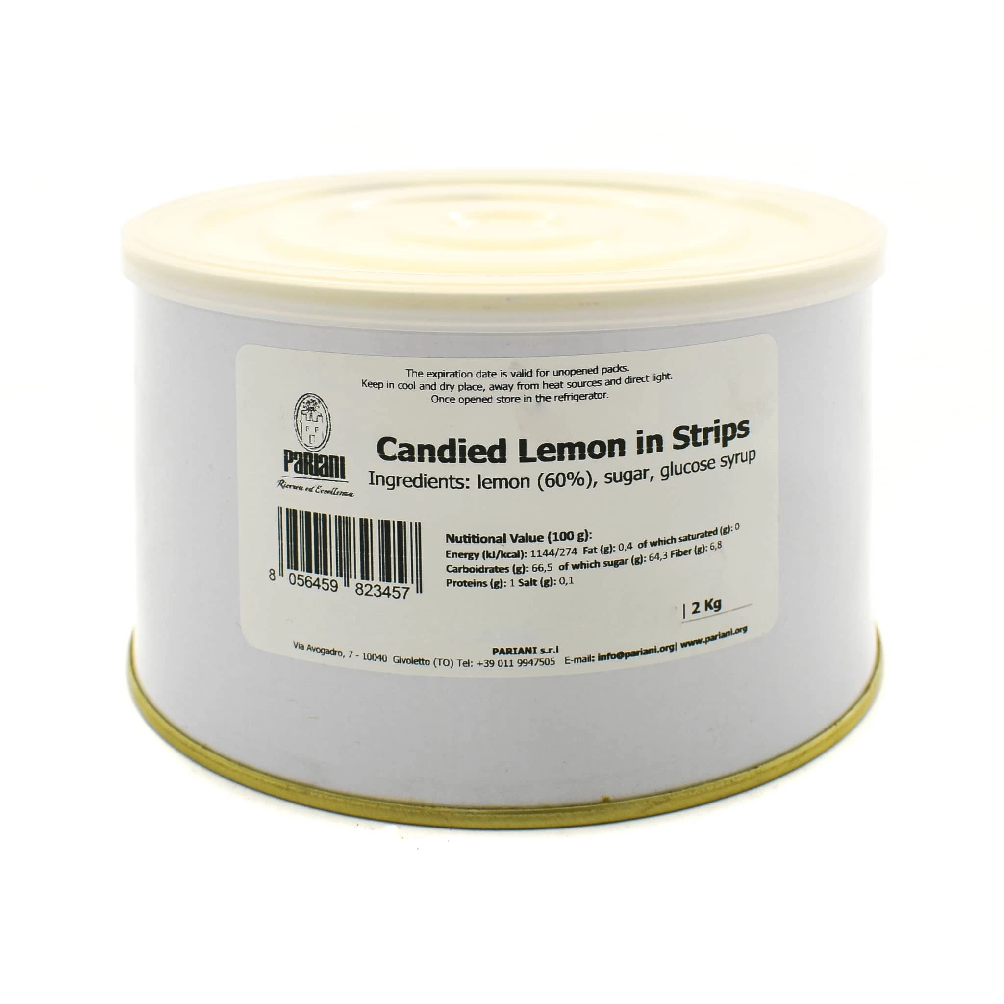 Pariani’s candied lemon in strips make a zingy addition to cakes and ice creams. Lemon peel is cut into slices, then candied in a sweet sugar syrup for a fragrant mix of flavours.