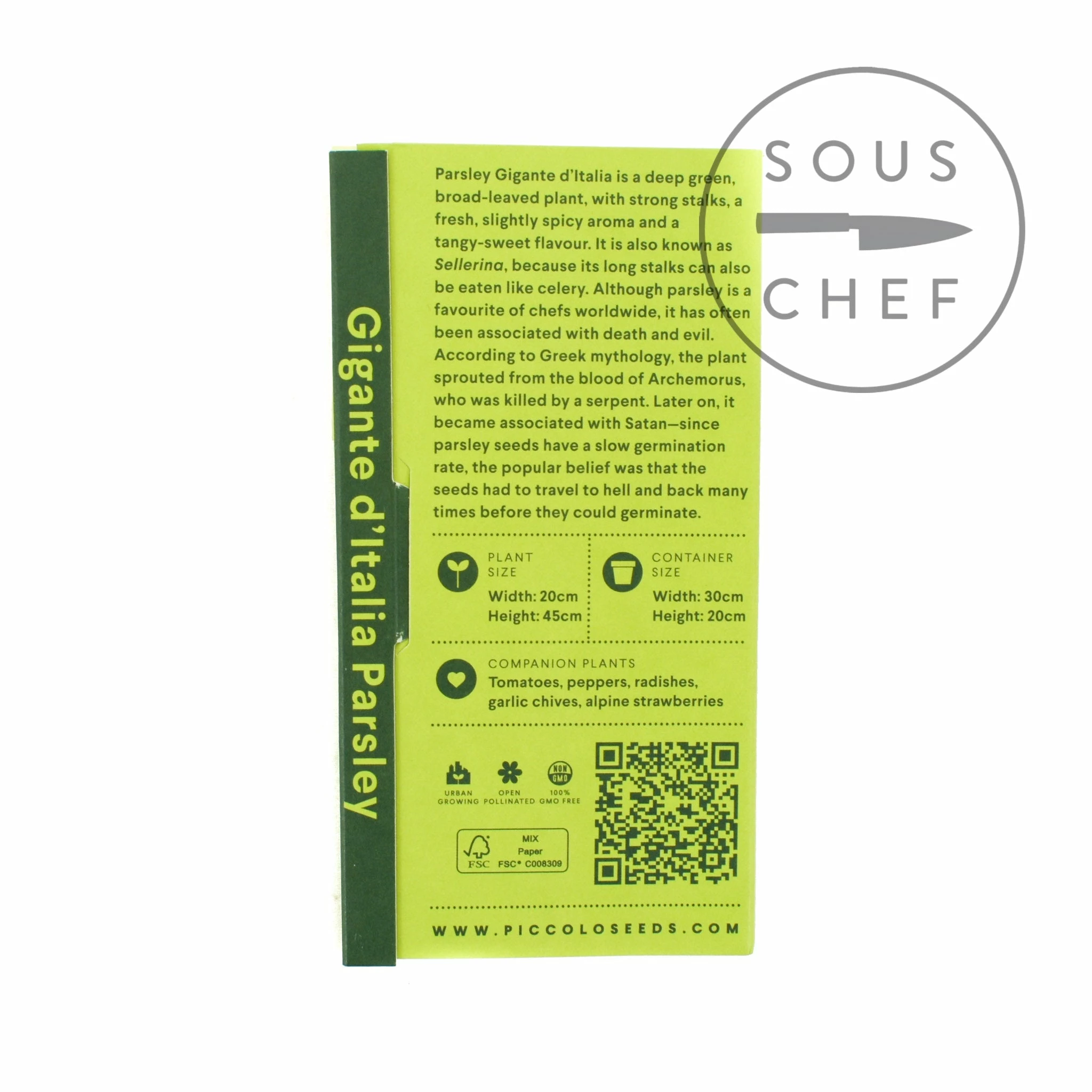 Italian giant parsley seeds grow into a bright green, bushy herb with a very slightly peppery flavour and refreshing green scent. The large leaves look gorgeous served on a bowl of colourful minestrone soup, and can also be chopped finely for homemade herb butters and salsa verde – delicious served with Turkish lahmacun breads.
