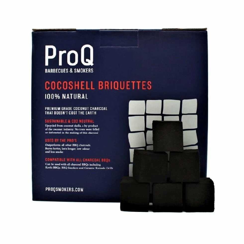 ProQ cocoshell briquettes are a revolutionary new barbecue charcoal. The compact bricks burn for up to 3 times longer than standard lump wood charcoal, which means less top-ups and waiting for new coals to get hot. And because they’re made from compressed coconut shells, they’re also a sustainable option.