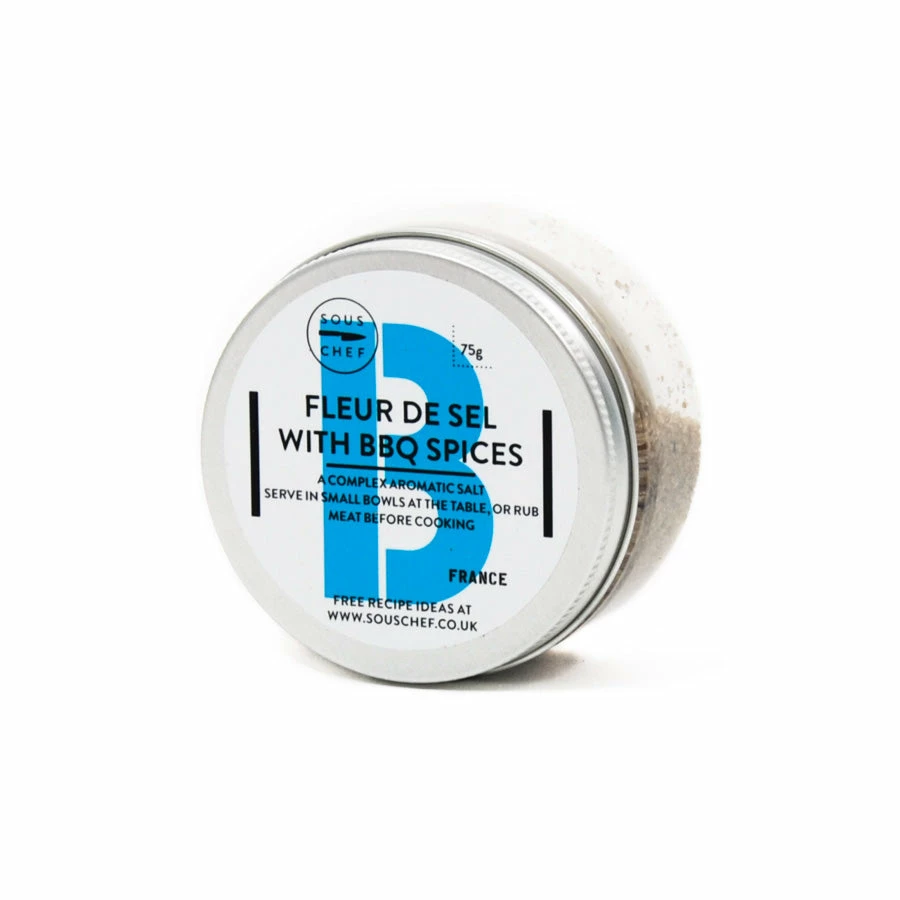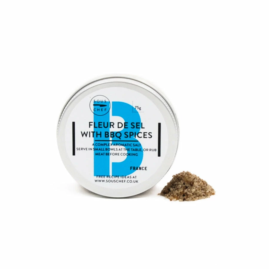 Fleur de sel with BBQ spices is a beautiful, intensely aromatic finishing salt. Sprinkle over tomatoes, cooked meats or roasted veg to give the classic fleur de sel crunch, with an elegant balance of grilled spice. We also love sprinkling it over meat 30-60 minutes before cooking – for a perfectly seasoned steak or lamb cutlet.