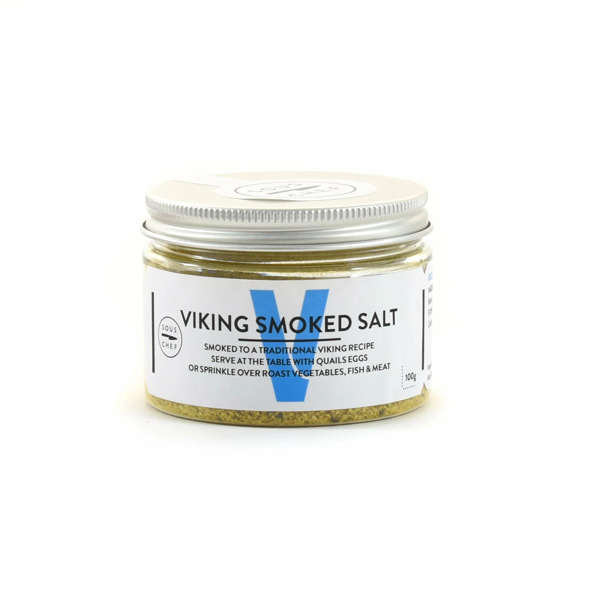 Viking smoked salt is a deep yellow salt, which transforms dishes with intense, Nordic, wood-smoke flavours. This Viking salt is enhanced with onion, black pepper and smoke flavour, making it a great way of bringing complex notes to plainer dishes like potato gratin, soufflés and is just delicious when used in fish pies. Also use it as a dry rub for red meats, as a salt dip for quails’ eggs, and twist on a classic Bloody Mary.Â