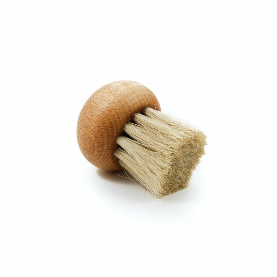 The mushroom brush with handle is 10cm long and made from beech wood. The no handle version is approx. 5cm across and fits snugly in the palm of the hand.