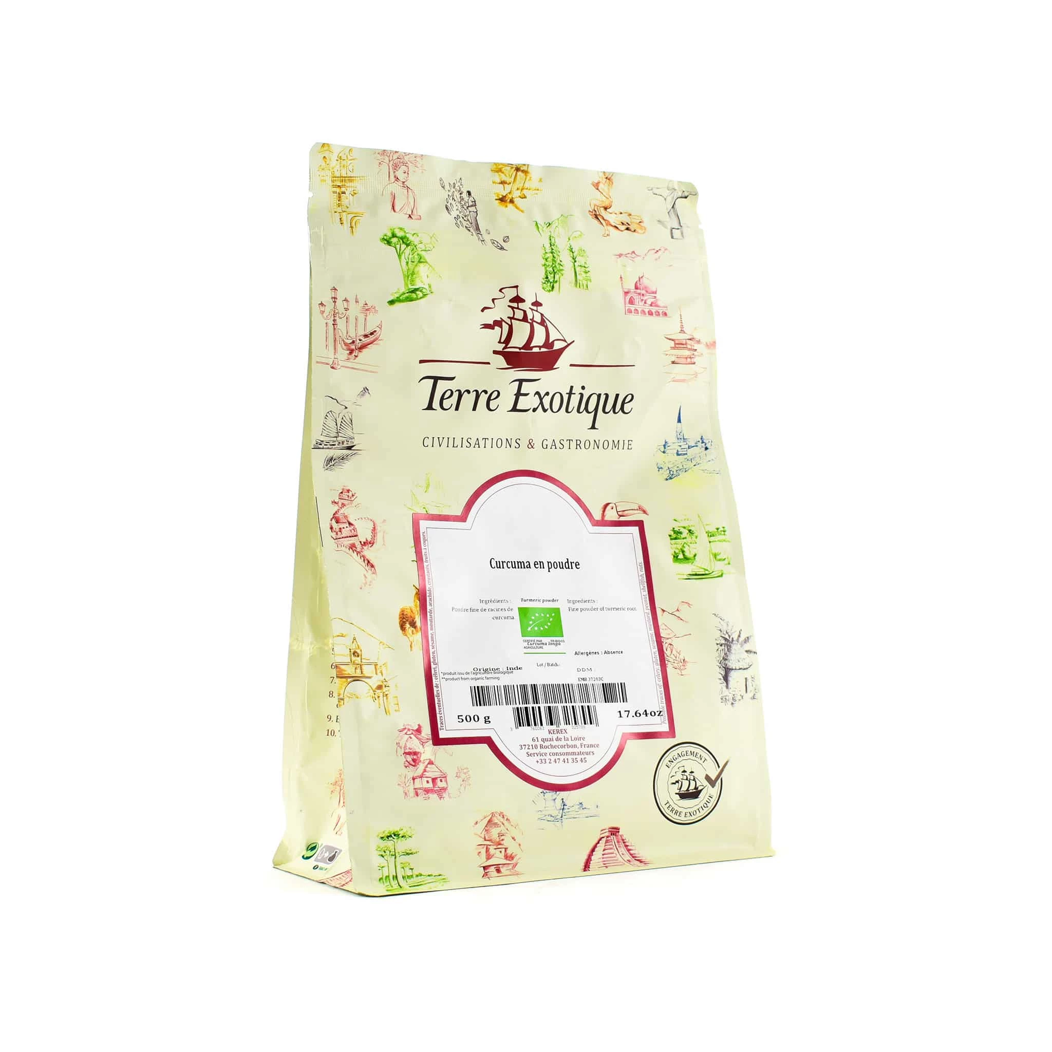 This 500g bag is ideal for catering and professional kitchens – the turmeric powder comes in opaque packaging, protecting it from light and preserving the fresh flavour, while the flat base makes it easy to store.